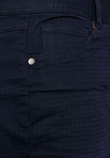 Cooler Print! Casual Fit Hose im Style Gesa von CECIL. Toller Hingucker ist der Minimal Print im Hahnentritt Look. In Middle Waist und mit Slim Legs sitzt sie bequem und zaubert eine tolle Silhouette. Die Kombi aus Reißverschluss und zwei Knöpfen und 5-Pocket Style runden den Look gekonnt ab.
