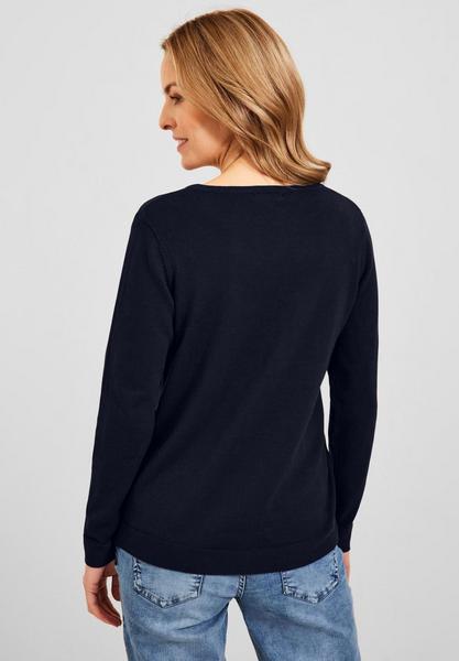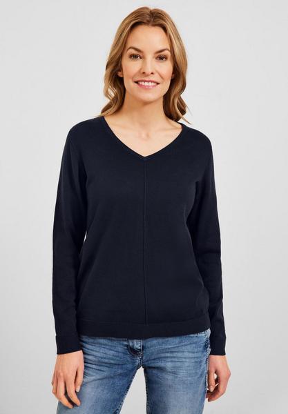Daily! Klassischer Damenpullover von CECIL, der jeden Look komplett macht. Mit V-Ausschnitt setzt er das Dekolleté gut in Szene. Die Unifarben laden zum Kombinieren ein. Die Naht auf der Front ist ein dezenter Blickfang.