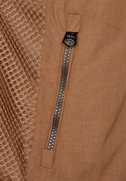 Comfy Protector: Der Windbreaker von CECIL bietet die perfekte Kombination von Funktionalität und sportiv-lässiger Optik. Der Tunnelzug an der Kapuze und am Saum, so wie auch der elastische Ärmelsaum, sorgen für einen besseren Tragekomfort und ein individuelles Styling. Das Mesh in der Kapuze, als Futter und als seitlicher Einsatz unterstreicht die sportliche Optik und am Reißverschluss ist ein reflektierender Anhänger, der für Sicherheit sorgt. Dank der dekorativen Nahtführung wird eine schöne Silhouette erzeugt.\n\n\n Sportiver Windbreaker aus melangierter Ware\n Reflektierender Reißverschluss-Anhänger\n Dekorative Nahtführung für schöne Silhouette\n Mesh in Kapuze und als seitlicher Einsatz\n Tunnelzug an der Kapuze und am Saum\n Elastischer Ärmelsaum\n Maße bei EU-Größe M ca.:\n Länge 68 cm, Brust 58 cm, Saumweite 58 cm\n Material: Oberstoff: 70% Polyester, 30% Polyamid, Futter: 100% Polyester