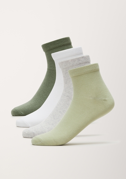 vier Paar angenehm zu tragende Kurzsocken, Packung in unterschiedlichen Farbkombinationen, breites, nicht einschneidendes Bündchen, ohne drückende Nähte, formbeständig und rutschen nicht, hochwertige, angenehm zu tragende Materialmischung mit hohem Baumwollanteil