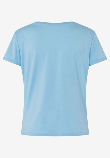 Das feminine T-Shirt von MORE & MORE mit V-Ausschnitt und kleinem Ärmelaufschlag ist ein toller Allrounder der sich vielseitig kombinieren lässt.