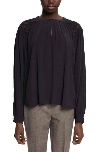 * Webware aus Viskose * Runder Ausschnitt mit Kragen und Keyhole-Detail * Zarte Spitzendetails an der Schulter * Weite Ärmel mit geknöpften Manschetten * Lockerer Schnitt
