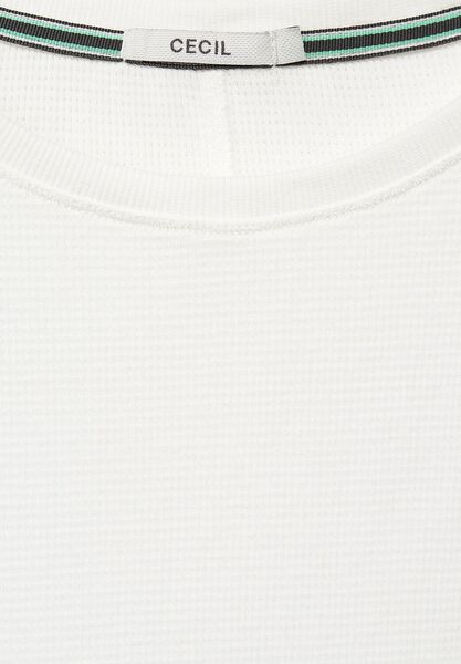 The Stripe Hype! Shirt von CECIL in moderner Waffel-Struktur. Rundhalsausschnitt und die schmalen Ripp-Bündchen am Ärmelsaum machen das Shirt zu einem sportlichen Fashion-Allrounder. Die gerafften 3/4 Ärmel geben dem Basic-Teil den gewissen Kick!
