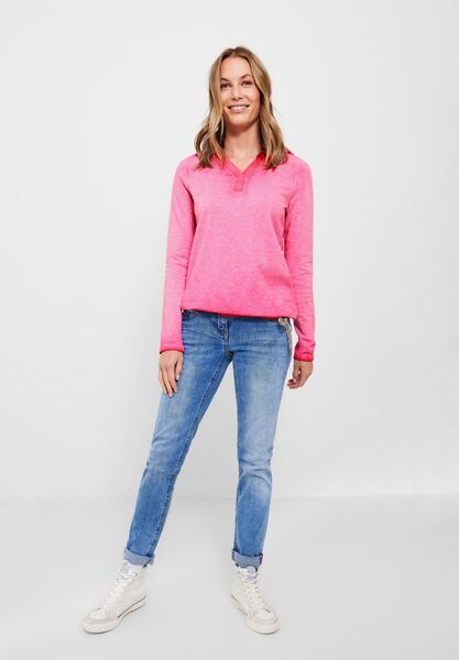 Say YES! Ein beliebter Klassiker im Kleiderschrank ist dieses Damenshirt von CECIL im Hoodie Style. Modern interpretiert, zeigt es sich in gewaschener Optik mit dezenten Farbverläufen. Dadurch überrascht die Unifarbe in einem besonders schönen Look. Kapuze, Langarm und Tunnelzugband im Saum ergänzen den Fit.