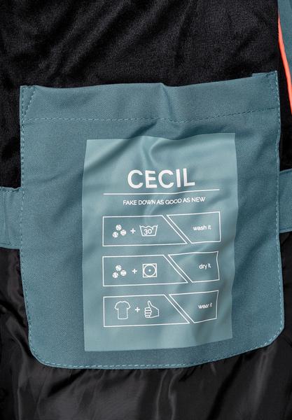 Neu gegen die Kälte: Der Mantel von CECIL sieht durch seine nathlose Steppung besonders interessant aus. Außerdem glänzt der Mantel durch sportive Details, wie einen 2-Wege Reißverschluss oder auch gecoateten Reißverschlüssen an den Taschen. Die sportive Kapuze wird durch ein Tunnelzugband ergänzt und an den Seiten ist jeweils ein Schlitz mit Druckknöpfen. So kann man sich mit dem Mantel auch bequem hinsetzen. Softes Fleece innen und ein gerippter Ärmelsaum runden den Look ab.\n\n\n Mantel mit nahtloser Steppung\n Kapuze mit Tunnelzug\n 2-Wege Reißverschluss\n Taschen mit Reißverschluss und Stecktasche innen\n Recycelte Füllung\n Schlitz an der Seite mit Knöpfen\n Maße bei EU-Größe M ca.:\n Länge 85 cm, Brust 57 cm, Saumweite 60 cm\n Material: Oberstoff: 100% Polyester, Futter: 100% Polyester, Wattierung: 100% Polyester