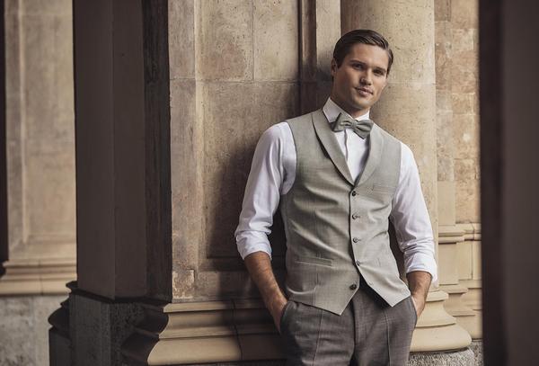 Die festliche Weste CG Warren aus der SAY YES Kapsel von CARL GROSS besitzt einen Schalkragen und einen Oberstoffrücken. Die Weste aus einem Wollmix ist ideal für einen längeren Tag geeignet.