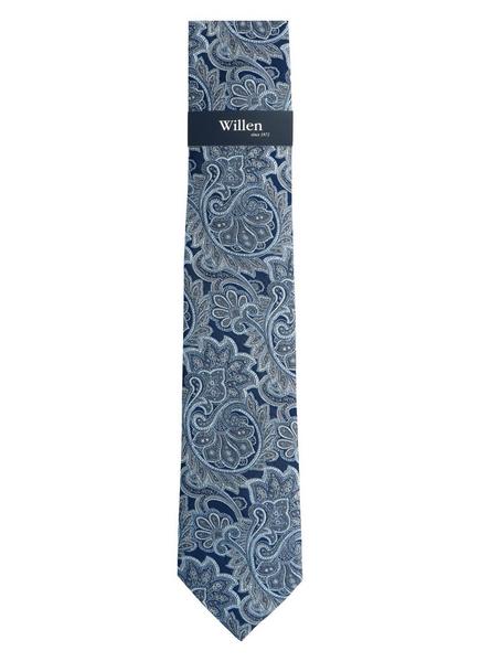 Mit dieser Krawatte erhält das Paisley, als Klassiker unter den Krawattendesigns, eine moderne und zugleich elegante Aussage. Der marinefarbene Fond passt perfekt zu den aktuellen marinefarbenen Anzügen. Kombiniert sind die Farben jeweils mit hellblau und weiß, wodurch die Krawatte vielseitig zu kombinieren ist.