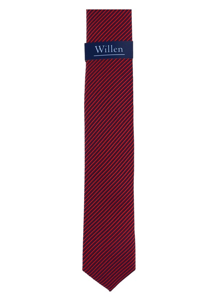 Die hochwertigen Willen Krawatten bestechen nicht nur durch ihr Design in Stoffen aus 100% Seide, sie werden in traditioneller Verarbeitung von Hand vollendet. Das Herzstück der Krawatte bildet die beidseitig aufgeraute Einlage, die sowohl in Gewicht, als auch im Zuschnitt perfekt auf den Seidenstoff abgestimmt wird. Eingebettet in einem zarten Viskosestoff, verleiht die Langfütterung der Willen Krawatte einen zusätzlichen Qualitätsstandard. Die drei Lagen Komponente gibt der Krawatte Volumen und Elastizität, sie sorgt für minimale Faltenbildung und optimale Knotenstabilität. Ein im ,,Self-Design‘‘ gefertigter Passantino ziert die elastische Längsnaht der Willen Krawatte.