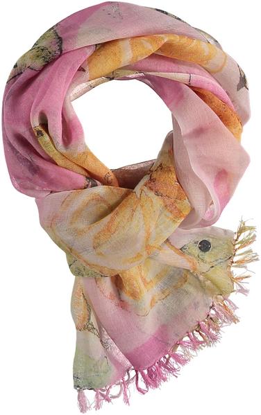 Fruchtig. Der Schal überzeugt nicht nur im Design, sondern auch in der Qualitätsmischung. Die Mischung aus Baumwolle, Wolle und Leinen machen den Schal zum absoluten Lieblingsschal. Durch seine abgestimmte Farbkombination und den kleinen Fransen am Ende wird das Design des Schals perfekt abgerundet.