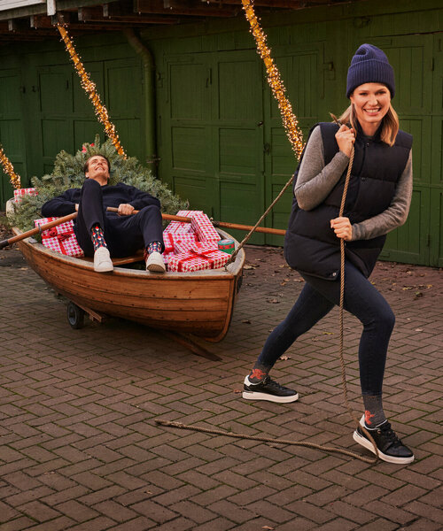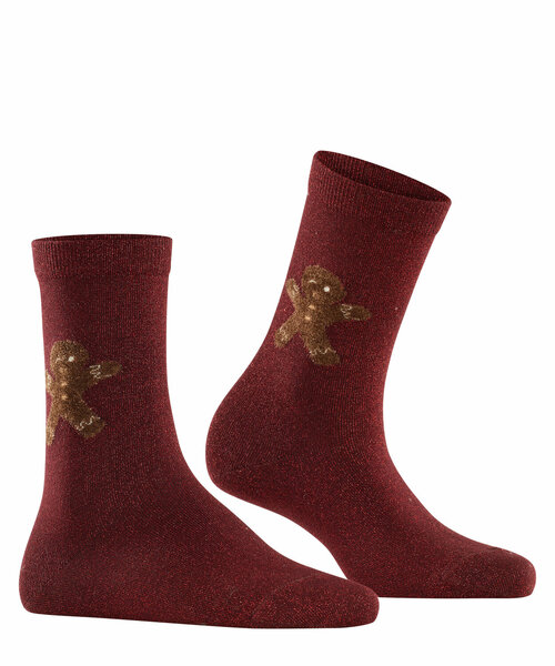 Diese Weihnachtssocke aus Glitzer-Charme-Garn punktet mit romantischen Lebkuchen-Motiven. Highlight ist dabei das flauschige Garn im Grund des Lebkuchen-Pärchens.